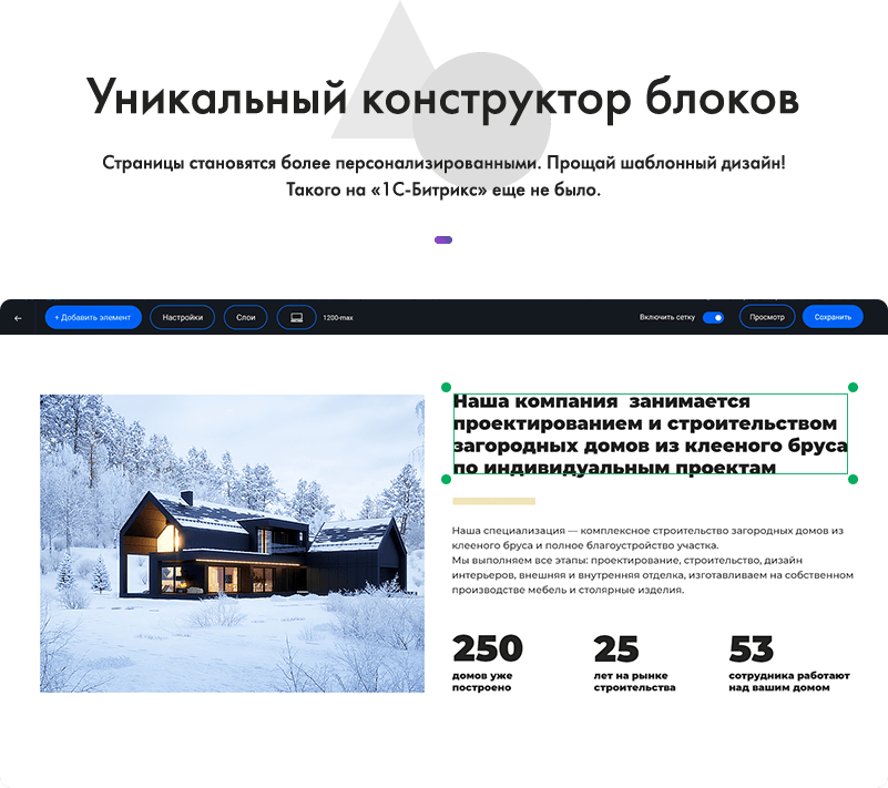 Решение позволит создавать персонализированные сайты под любую тематику без помощи программиста и дизайнера. Еще более эффективные целевые страницы, больше персонализации — прощай шаблонный дизайн! Такого на «1С-Битрикс» еще не было.