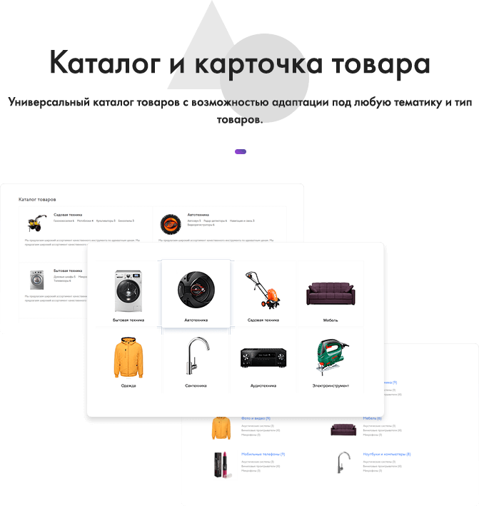 Далее, мы предусмотрели универсальный каталог, который может адаптироваться под любую тематику и тип товаров.