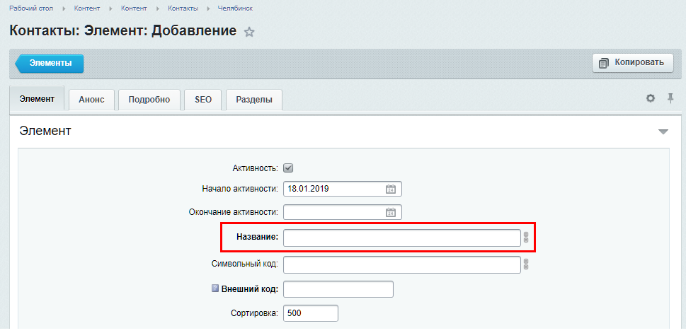 При добавлении нового магазина в редакторе на основной вкладке обязательно укажите название города, в котором находится отдел. Укажите полный адрес магазина. Не скупитесь на детали. Укажите адреса всех магазинов. Клиент должен иметь возможность быстро найти вас в интернете. Также укажите остальные свойства: