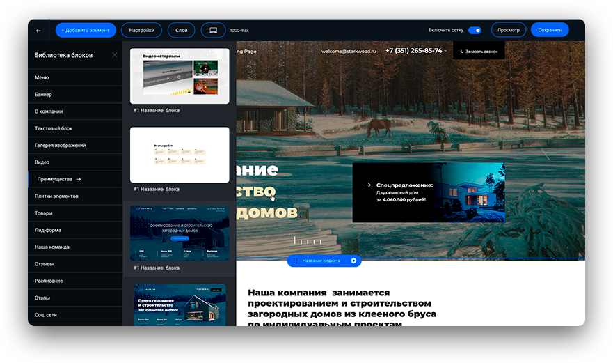 Вы можете воспользоваться нашей библиотекой блоков, которую мы регулярно пополняем, чтобы у