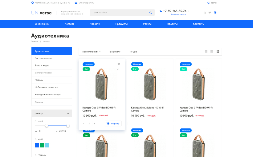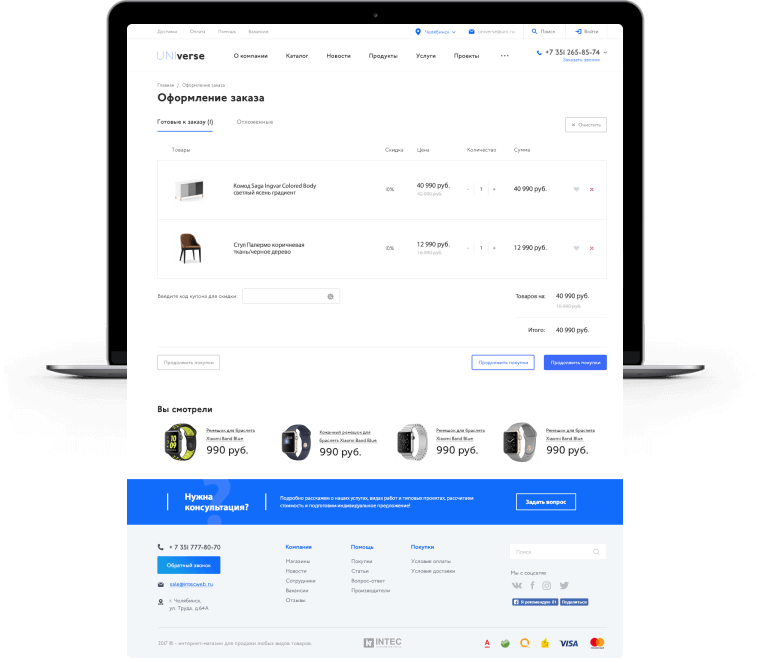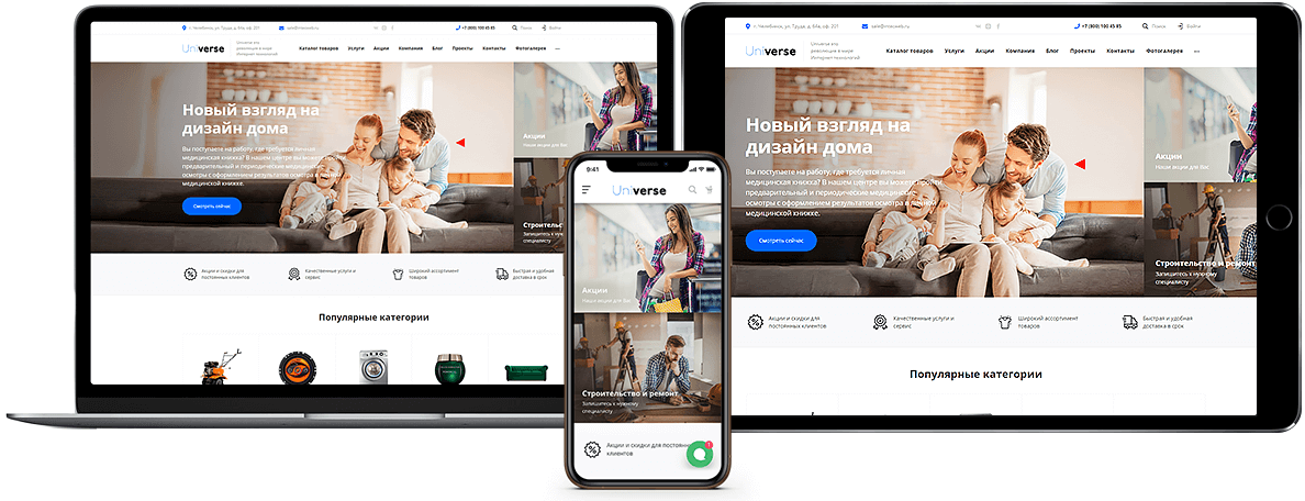 Задача интернет-магазина - полностью соответствовать потребностям и специфике вашего бизнеса, достигая максимальных коммерческих результатов. Благодаря уникальному конструктору дизайна INTEC: Universe вы сможете адаптировать интернет-магазин под индивидуальные задачи вашего бизнеса легко и просто, самостоятельно, без привлечения программистов и правки HTML-кода. Вы просто добавляете необходимые блоки и модули - отзывы, лид-формы, баннеры и разделы каталога и перетаскиваете их по странице в нужное место.